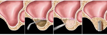 2️⃣ Elevación de la membrana sinusal: se levanta cuidadosamente la membrana del seno maxilar para crear un espacio donde se colocará el injerto óseo.