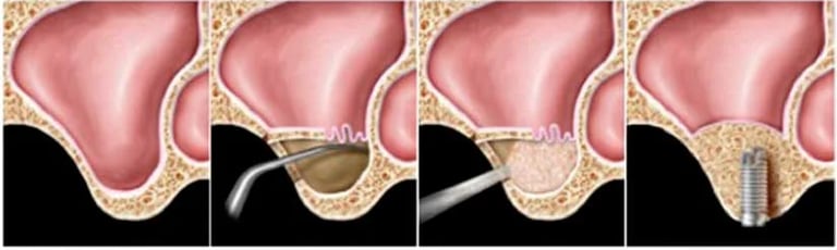 La elevación de seno maxilar es un procedimiento seguro y efectivo que se realiza en varios pasos: